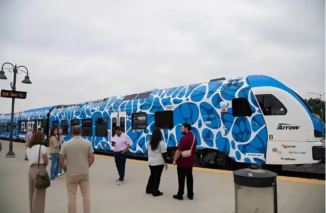 North America’s first hydrogen-powered passenger train has entered full commercial service in California, with the San Bernardino County Transportation Authority launching the Stadler-built Zero Emission Multiple Unit (ZEMU) on the San Bernardino–Redlands Arrow Corridor. The hydrogen fuel cell–battery hybrid train operates up to 16 daily trips along the nine-mile route, emitting only water vapor while delivering a range of up to 380 miles and a top speed of 79 mph. Built on Stadler’s FLIRT platform and fully compliant with Federal Railroad Administration regulations, ZEMU eliminates the need for overhead electrification by using a self-contained hydrogen-battery power system. Recognised by California’s State Transportation Agency as a national model, the project establishes a blueprint for future hydrogen rail corridors and positions SBCTA as an early leader in zero-emission rail transit in North America.